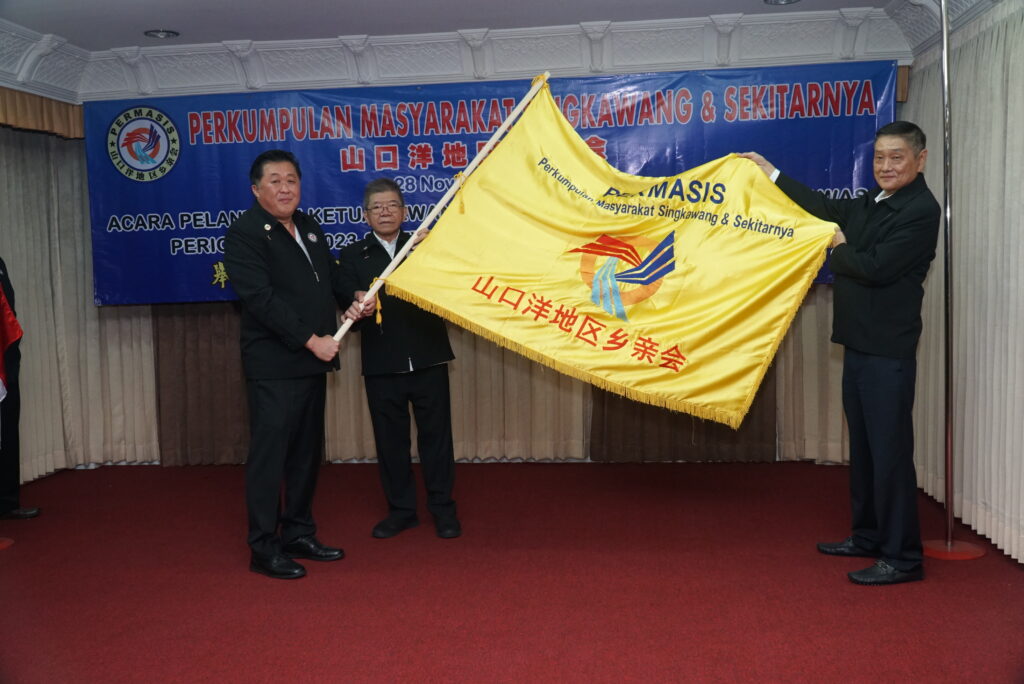 Ketua Dewan Pembina Amin Supriyadi menyerahkan pataka (bendera PERMASIS) kepada Ketua terpilih periode 2019-2023 Lay Khian Sen yang melanjutkan masa kepemimpinannya yang ke-2, disaksikan oleh semua Dewan Pengurus PERMASIS.